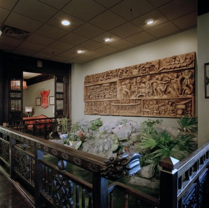 | | This project located at the southwest corner of the intersection of University Avenue and Western Avenue in St. Paul, a few block west of the State Capital.It is a brand new construction which has two stories plus a partial basement. The first level is the Mai Village Restaurant, and the second level has a Vietnamese Furniture showroom and five professional offices.The restaurant offers the guests a step back in time to experience all the splendor of Imperial Vietnam. A grand entry way leads to a bridge over a coy pond with water fall and a back wall of story carving. A bamboo floor and pagoda accentuates a décor mixed with oak, crafted tile and Thai silk upholstery to provide a glimpse of an opulent Vietnam. A highlight of the antiques is an imperial wooden cabinet with display to remember the owner’s uncle, Bao Dai, the last Vietnamese emperor who lived his final years in France from 1955 to 1997. |  |