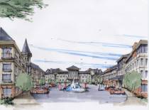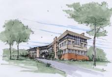 The senior campus is organized by a “Town Square”. The Town Square forms a north-south axis. The north end of the axis is the main entry of this neighborhood from Denver Street. The south end is anchored by an 80-unit independent-living, assisted-living and memory-care apartment. The Town Square is flanked by 30-unit senior apartment on the west and 30-unit senior condo on the east. On the east side of the Town Square are 40 unit single-story town houses; On the west side are 46-unit two-story town houses. A 40-unit student apartment is located at the northwest corner of the senior campus to serve the Hutchinson Community College which is on the north side and within walking distance from the site.